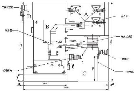 The enclosure protection class of the switchgear can reach IP4X, and the protection class is IP2X when the handcart compartment door is open. See Figure 1 for the structure.