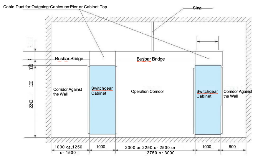 1000mm (for PC cabinets and MCC double-side operation cabinets).