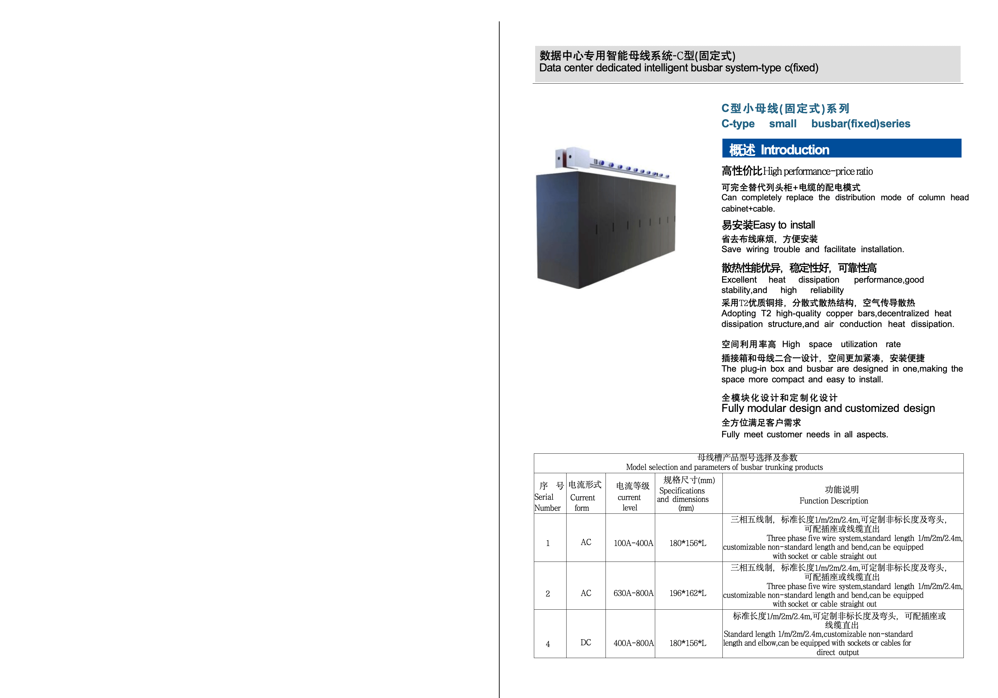 Data center dedicated intelligent busbar system-type