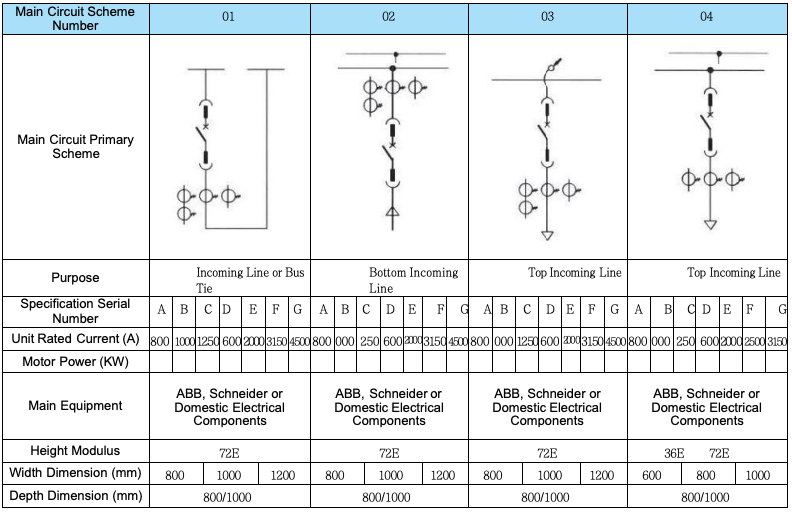 For outgoing line circuits or incoming line circuits with a current exceeding 630A, the switch body should preferably be of withdrawable type or fixed type;